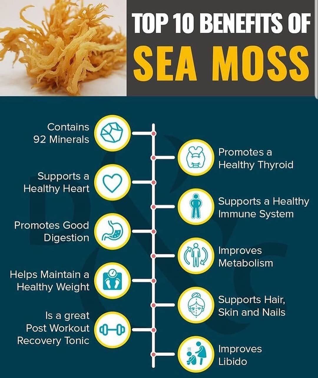 Sea moss contains 92 out of 102 minerals that the body needs as well as key vitamins like vitamins A-E, & K that are also found in other vegetable.
